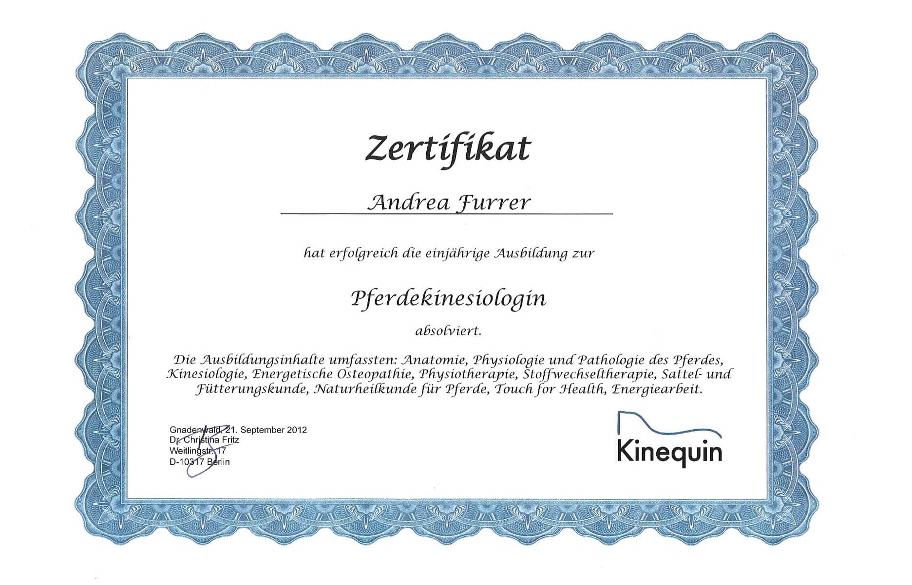 2011 / 2012 Ausbildung zur Pferdekinesiologin bei Dr. Christina Fritz